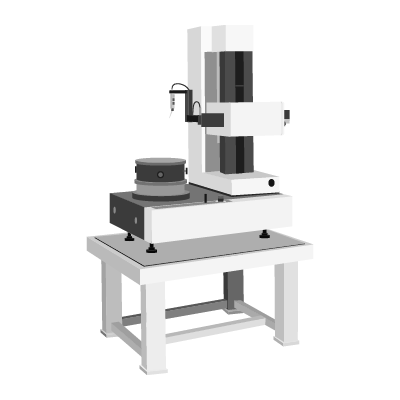 回転テーブルに被測定物を載せて回転させ、その全周の微細な凹凸を計測する事で  測定物の形状がどれだけ真円に近いか測定する装置です   同軸度、同筒度等も計測可能です