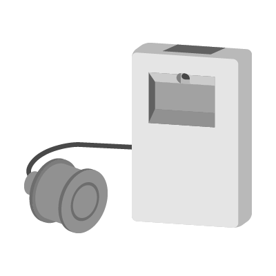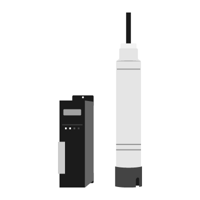 ケーブルの先に取り付けた検出部を水中に投入して水位を計測します。検出部に内蔵されたダイヤフラムが液面のレベルを液体圧として捕え、その液体圧を電気信号に変換し、液面を連続検出します。上水道、下水道、井戸、貯水池、配水池、ダムや河川などにおいて、水位の計測に用います。