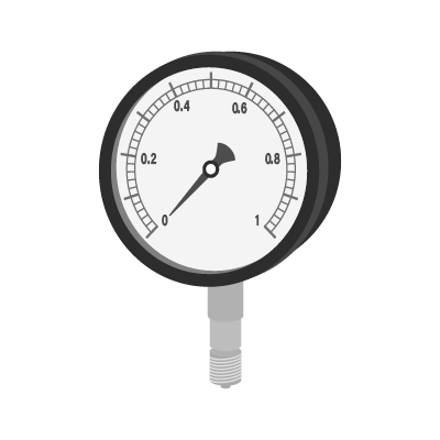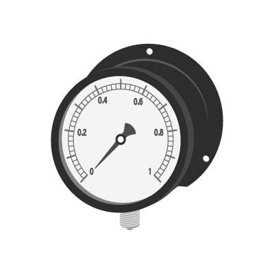 圧力の検出には様々な方法がありますが、それらの中でブルドン管を用いて圧力を計測する圧力計です。ブルドン管は、曲げて先を塞いだ金属管で、圧力が加わると曲がりが伸びるため、それに連動した表示用の針を回転させて圧力値を表示します。機器を動作させる電源も必要とせず、単純な機械動作だけで圧力が計測できるため、あらゆる装置における空気、水、油などの、現場における圧力計測・指示用として用いられています。