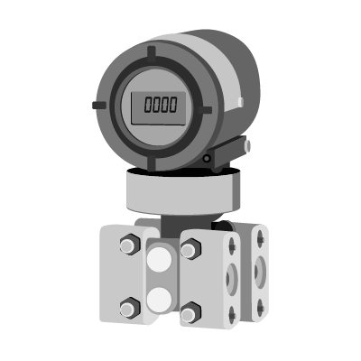 オリフィスやフローノズルなどで発生した圧力損失(差圧)を電気信号に変換(空気信号に変換することも可能)して、上位側(監視側)に伝送します。アナログの電気信号(直流電流信号)は長距離伝送に優れており、大型のプラント計装に適しています。